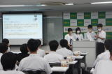 さらに、生徒の「春日井市への提言」アイデア発表がありました。自分たちで課題設定・調査し、アイデアを練って発表する、というプロセスを踏むことで、主体的・計画的に考え、実行する力を持った生徒像を目指しているとのことでした。その一助となることを願い、代表玉田から生徒の発表に対して講評を行いました。