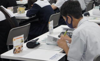 また会場では、生徒の皆さんに防災用品と防災士に関する展示を見学してもらいました。3人家族が7日間在宅避難するために必要なモノを展示した防災用品のコーナーでは、実物を見る・触れることで防災への意識が高まったのではないかと思います。「防災士」という言葉を初めて聞いた生徒も多かったようですが、しっかりと覚えてくれたことでしょう。